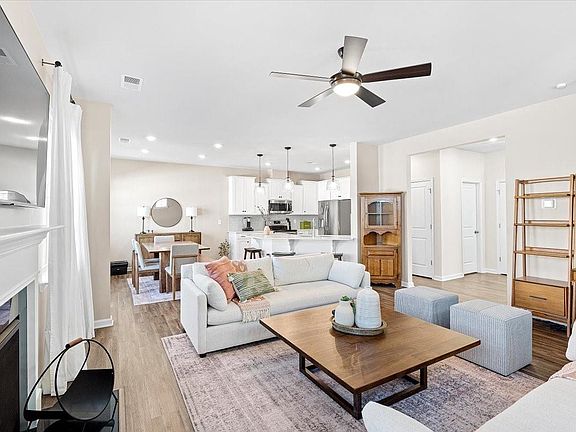 Don't miss out on this move-in ready home! This home features 3 bedrooms, 2.5 baths, and a 2 car garage. Kitchen includes white finish cabinets, quartz countertops, stainless steel appliances, upgraded pendant lights, and tile backsplash. The first floor has luxury EVP flooring and a gas fireplace in the family room. The second floor offers the owner's suite with 2 spacious walk in closets!! Resort style amenities and outdoor activities all within walking distance. The community features a resort-style pool with a splash area, clubhouse, workout facility, two playgrounds, tennis courts, baseball & soccer fields, walking trails, and community pond.