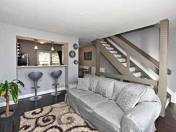 Newly updated end unit, so many quality updates, fresh and contemporary, truly move in ready! Kitchen new quartz counter top, mosaic tile backsplash, stainless steel appliances, beadboard. Beautiful laminate hickory floors, lots of new drywall and knockdown ceilings, brushed nickel hardware, new light fixtures, new white panel doors and trim, fresh paint, main bath new vanity, sink top, toilet, awesome ceramic tile floor, 1/2 bath new pedestal sink, toilet, finished basement, new hot water tank, glass block window, fabulous staircase remodel with stainless steel wire railing, paver patio with privacy fence. Nice Barkwood location situated next to a side treed area, steps away to the Sancus picnic/play area, minutes to JPMorgan Chase and Polaris mall, once you see you will want to stay!