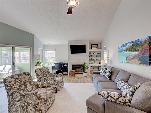 Beautiful, clean, bright, and vibrant 3 bedroom and 2 bathroom home boasts natural light, an updated interior with flowing solid surface flooring throughout. The open concept gives a spacious feel with an excellent floorplan. Don't miss the well-appointed upgrades and updates. Enjoy the full-view glass enclosed sunroom year round, a spacious great room, marble-accented wood-burning fireplace, built-ins, and a cathedral ceiling. Large master suite includes marble shower and walk-in closets. This lovely home has been pridefully maintained. Carefully landscaped exterior sees much sun and is perfect for the gardener. Close to restaurants, groceries, and entertainment. Come fill this move-in ready home with love and your personal touches!