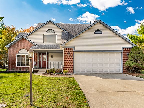 Beautiful 3-bedroom, 2.5-bath home located on a quiet cul-de-sac in desirable Sunblest Farms. Two-story entry opens to a bright living area with cathedral ceilings and abundant natural light. Open kitchen with breakfast bar overlooks family room with gas fireplace, perfect for winter months ahead. Primary suite features vaulted ceilings, dual vanity, soaking tub, and separate shower. Two additional bedrooms provide space for guests or home office. Expansive backyard with patio-perfect for entertaining or relaxing. Lot extends beyond fenced area for additional outdoor space. Two-car garage with pull-down stairs and attic access for additional storage. Prime location-walk to Holland Park and just minutes to The Yard, Nickel Plate trail, schools, and shopping.