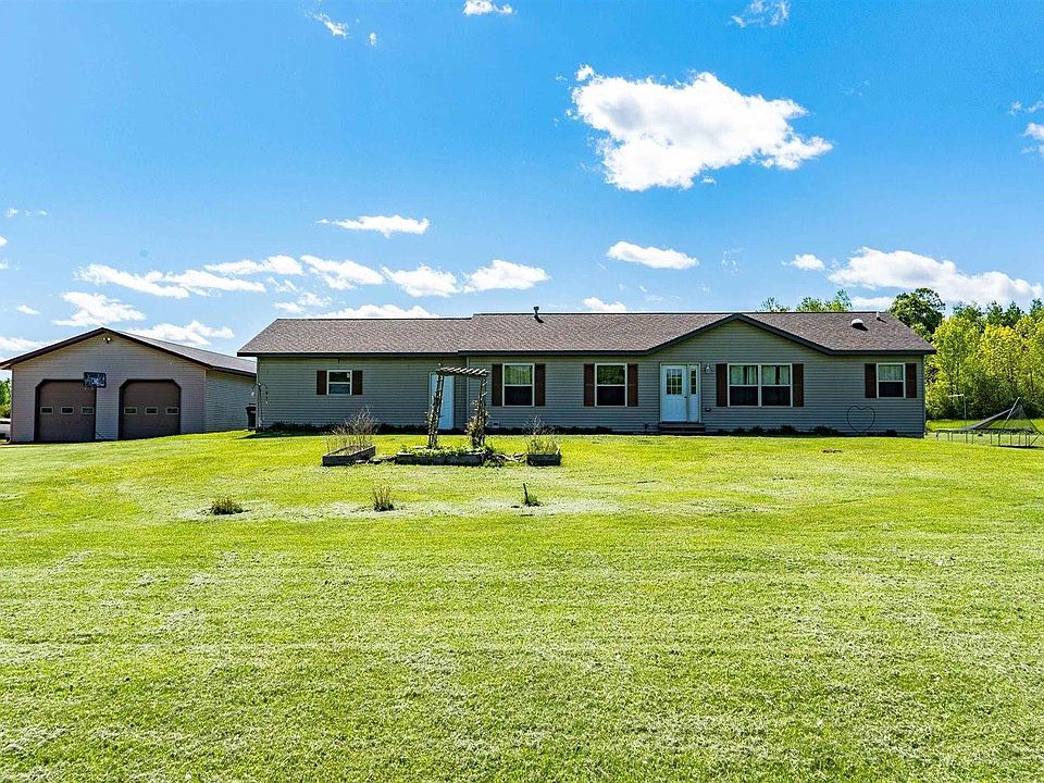Good ol' county living will be yours with this 3-5 bedroom, 2 bath, 2 car attached garage located on 9.5 acres. You'll love this ranch style home with a split floor plan that offers an open concept between the kitchen and living room with vaulted ceilings. The main level has a spacious master bed & bath with garden tub, double sinks. Additional main floor laundry, bath and 2 bedrooms also located on main level. The lower level includes a family room, bonus room and 2 bedrooms that just need some finishing touches. You will enjoy the pond that is filled with bass, bluegills and walleyes and great place to make a splash. There is also an additional storage shed that is 64x32 with a hoist and is a great place to have a side business or to tinker with your toys. This home is minutes from Marshfield and Auburndale. Let us show you the way to buy this home.