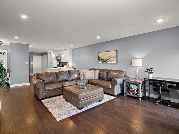Welcome home to this stunning, fully remodeled end-unit townhome in the heart of Orland Park! Located on a private cul-de-sac. You'll be impressed by every single detail the moment you walk in. This beautiful home offers 3 bedrooms and 2 full baths, including a main-level bedroom and full bath-perfect for guests or anyone looking for first-floor living. Enjoy an open-concept layout with a bright and airy eat-in kitchen, breakfast bar, and plenty of space to entertain. The kitchen features quartz countertops, a glass tile backsplash, and all stainless steel appliances that make cooking a joy. The living room offers a cozy fireplace and floor-to-ceiling windows that fill the space with natural light and overlook the spacious backyard. Upstairs, you'll love the shiplap accents, stylish lighting, and a versatile landing area that's perfect for a reading nook or home office. The primary bedroom features a shiplap accent wall, rustic sliding barn doors, and a luxurious en-suite bathroom with a custom glass-tiled shower. With a two-car garage, large yard, and a modern, move-in-ready design, this home truly has it all.