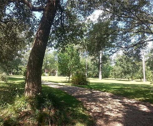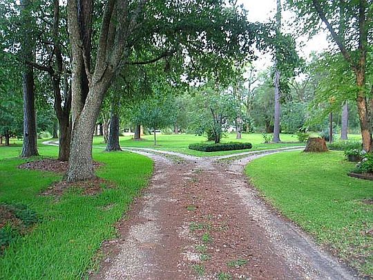 LOCATION, LOCATION! Spacious home w/Lg Rooms and lots of Storage. Let the kids run on these 4, park-like, no flood zone acres. Set back and very private. Listen to the birds while peacefully swinging on your 41'X10' Deep, Brick paved front porch. Cozy up in front of the fireplace on those cold nights. Plenty of room to Entertain family and friends... Huge LR, Lg rear Patio and dual purpose, attached Carport. Great rural neighborhood