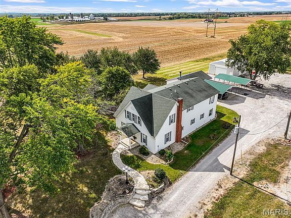 Welcome to 7733 N State Route 159 in Moro! This is quite the place, if you love love the outdoors space! Almost 12 acres of well manicured land, nice sized home, two pole buildings, oversized detached garage, lovely patio, screened in porch, etc. This seller has done so much to make it beautiful. The large home has an amazing double story height family room, separate living room, kitchen, 4 bedrooms, 2 bathrooms, formal dining room, and an office. All freshly painted. Updates include: All new paint in the home, brand new kitchen, freshly painted buildings, 2 new furnaces and 2 new AC units, TONS of grounds clearing, and more! Grab your favorite Realtor and schedule a showing today!