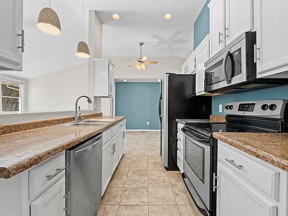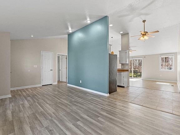 This is the house you don't want to miss! Fully updated and freshly painted from floor to ceiling! This open ranch offers waterproof laminate planking in both living areas, newer carpet in all bedrooms and beautiful ceramic tile in the bathroom and kitchen. The light fixtures have also been updated and ceiling fans are found in every bedroom. The large windows, and vaulted ceilings allow an abundance of light to beam through the home. The kitchen is complete with white cabinetry, brushed nickel hardware, all stainless appliances (dishwasher 2023 and microwave, 2017), pendant and can lighting and an eat-in breakfast bar. Additional upgrades include Spanish-lace ceilings, wainscoting in the bathroom and 2nd bedroom, a newer bathroom vanity with quartz countertop, 6 panel doors, a pocket screen front door at the entry and a gorgeous, paved walkway to the homes entrance. The luxuries don't stop inside. The backyard is fully fenced and backs up to Kreager Park. The wooded backlot offers privacy, shade, and a convenient walkway to the park, just on the other side! Enjoy the park by day and a bonfire in your backyard by night! Come see the beautiful covered front porch and admire the surrounding mature trees. It will not disappoint! All appliances, along with the HE washer and dryer STAY! Don't let this one pass you by, it won't last long! (roof 2010, water heater 2017).
