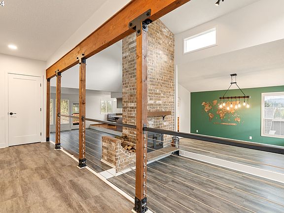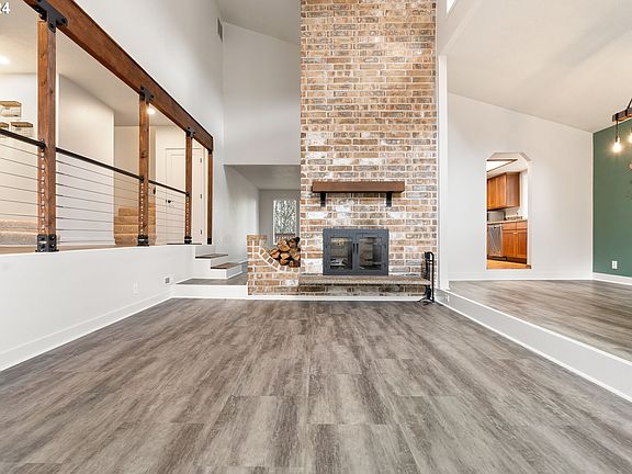 A beautiful, extensively remodeled and updated NW contemporary home with great territorial and mountain views! The remodeled kitchen has a large eating area/room, cherry cabinets and stainless steel appliances - which are all included. The open plan living areas have many windows to let the light in, and high, vaulted ceilings for bright and open atmosphere. There is a lovely double sided wood burning fireplace with wrought iron doors, a built-in wood rack and a stunning floor to ceiling, brick surround. Also take note the deck off of the Family room. The large master suite has a beautifully remodeled bathroom, a walk-in closet, and a huge storage space as well as its own deck. All of the important updates have been completed! A new roof, 95% plus high efficiency gas furnace and AC were installed in 2018, new double pane vinyl windows in 2019, new double sided iron fireplace surround in 2022 and an extensive remodel of the primary suite and 2nd bathroom in 2024. The brand new LG washer & dryer are included. Low maintenance yard with sprinklers. Very large, high crawl space/unfinished basement space under house.