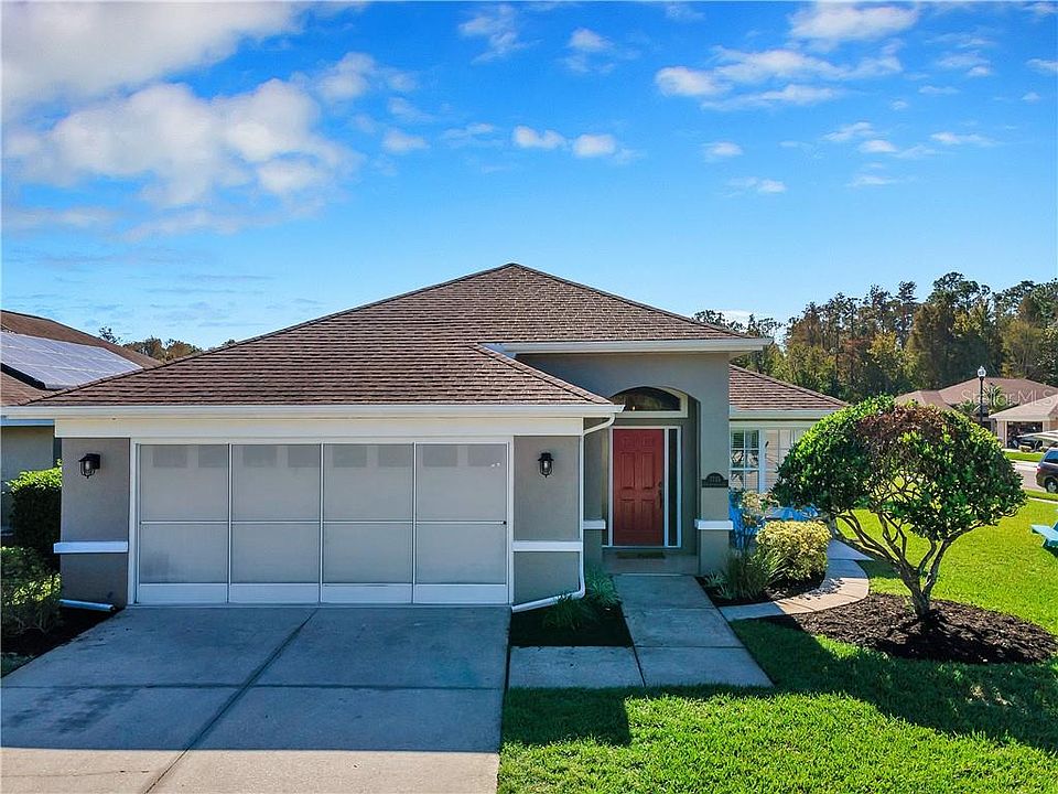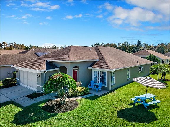 Welcome to the idyllic neighborhood of Wyndgate Village: surrounded by conservation land and simply picture perfect. This 3/2/2 home sits in the heart of the community on a corner lot conveniently across from the path that leads you on a quick walk to the community pool. With over 2000 square feet and high ceilings this home feels spacious and welcoming from the minute you walk in! The kitchen is huge and features tons of cabinets and counter space. The attached dining area is open and bright. Interior laundry room means never having to stand in the Florida heat to do your laundry. On the back screened in porch you will find a cozy hot tub perfect for relaxing after a long day of work. The two car garage comes with screening and plenty of room for tools and toys! Throughout the home you'll find lots of storage options - closets galore! New Roof being installed end of December, AC is 2011, Water Heater 2017, New exterior paint, new interior paint, new light fixtures, new window blinds, new toilets... so much to offer! And all for a great price! Don't miss your opportunity to own this little piece of heaven!