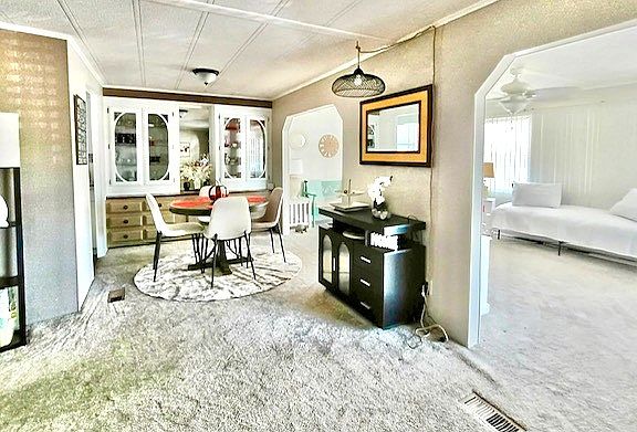Beautiful Showcase Home Fully Furnished & Move-In Ready!Step into this stunning 2-bedroom, 2-bath home featuring modern updates and thoughtful details throughout. Enjoy a bright, open layout with Plantation shutters, new appliances, and an updated kitchen complete with garbage disposal.This home comes fully furnished, including an extra refrigerator in the shed and a newer washer and dryer for added convenience with plenty of storage. The property boasts a new floor barrier and rubber roof (installed 3 years ago and clear-sealed annually) for peace of mind.Relax outdoors in the screened sitting area under the carport, and take advantage of the long driveway for ample parking.Highlights:Impeccable Decor2 Bedrooms | 2 BathroomsUpdated Kitchen & AppliancesPlantation ShuttersFully FurnishedNewer Washer/Dryer & Extra RefrigeratorRubber Roof & Floor BarrierHVACScreened Outdoor Sitting AreaThis home is the perfect blend of comfort and style don t miss your chance to make it yours!