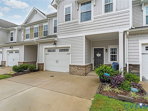 Upstairs, the primary suite is filled with natural light from large rear-facing windows and includes a walk-in closet with ample shelving and double vanity sinks, tiled shower, and tile floors. Two additional bedrooms and a full bath complete the second floor. On the third level, you’ll find a versatile loft or fourth bedroom with its own walk-in closet and private full bath—ideal for guests or a home office. Additional highlights include a one-car garage with built-in shelving, half bath on the first floor, SimplySafe Ring security system, and a peaceful setting. Located within walking distance of schools, the library, restaurants, and shops, this home is also conveniently positioned between Richmond and Williamsburg—both just 25 miles away. Don’t miss the opportunity to make this move-in-ready townhome your own!