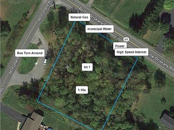 This prime corner building lot is located in the Oriskany School District. It offers Municipal Water, Natural Gas and Public Poles at the road. Tree clearing and fill bonus of $5000. offered with accepted offer.