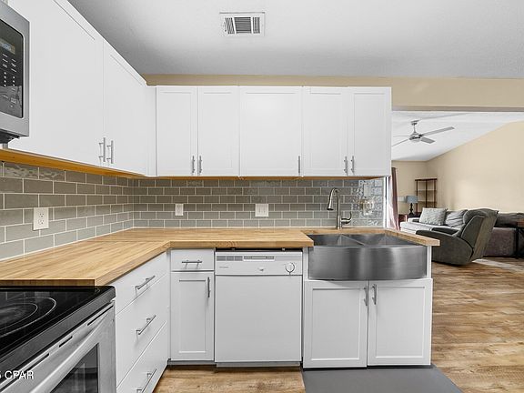 The newly renovated kitchen, boasting brand-new cabinets, butcher block countertops, stylish tile backsplash, and brand-new appliances — offering plenty of space to prepare your favorite meals, Additional highlights include, Vaulted ceilings and a cozy fireplace, Modern light fixtures throughout, Privacy-fenced backyard, Large patio perfect for gatherings,Approx. 30' x 16' pool, and a One-car garage.