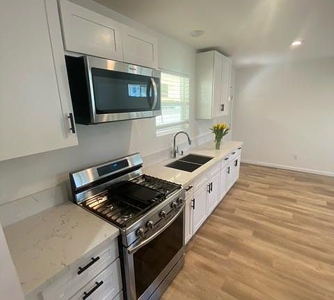 Open House Saturday (4/23) 11 AM- 3 PM 2022 brand new construction. 2 bedroom/1bathroom guest house in north-west Downey with 800 sqft. Guest house comes with it's own separate entrance and an outdoor area. Laminate floors throughout, large kitchen with brand new stainless steel appliances (range, microwave and fridge), quartz countertops. Bathroom comes with full bathtub with shower. Master bedroom comes with large walk-in-closet. Spacious second bedroom comes with sliding door mirror closet. All utilities included except electricity. House is conveniently located close to restaurants and supermarkets. 1 year lease required with no prior evictions in the past 3 years. Call listing agents for questions. Renter responsible for electricity only, all other utilities paid by the owner.