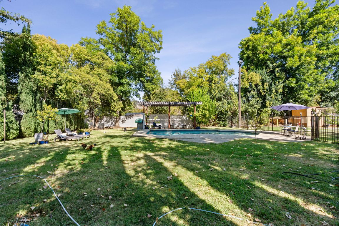 Sparkling poolCitrus treesNearly half-acre paradiseVibrant greeneryUnmatched privacyHappy chickensTwo master suites
