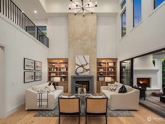 Discover elevated luxury living in this prestigious Sand Point Country Club home by Seattle's premier builder, Approach Build. Inside this timeless modern craftsman, experience grandeur with soaring two-story ceiling in the central living area. Gourmet kitchen boasts a Carrara marble island, butler's pantry and Nanawall window positioned over bar top with beverage center for in/outdoor hosting. Spacious backyard features a covered patio with custom fireplace. Well-appointed lower level is perfect for entertaining with built-in bar and custom designed to fit a Full Swing golf simulator. Upstairs, each of the four bedrooms offers an en-suite, while the luxurious primary spans the depth of the home, with vaulted ceilings and territorial views.
