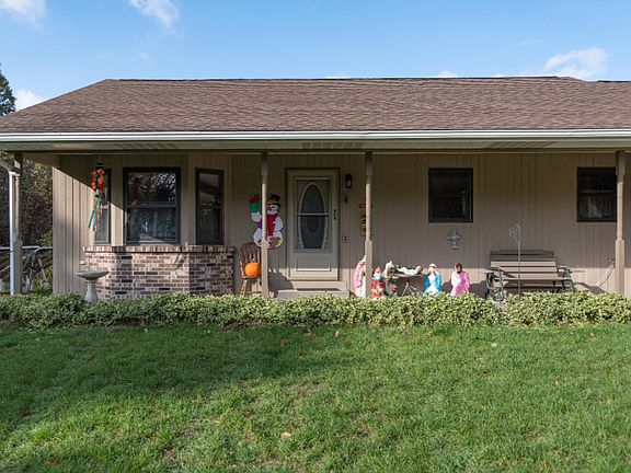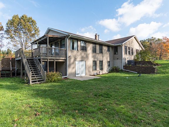 Eco-Friendly ranch/walkout on 5 rolling acres in Texas Township! The home has low energy costs due to solar panels, windmill, and Leaders wood-burning add-on to natural gas furnace. Over 2,000 s/f on main level including huge kitchen with granite counters and new cabinetry, stainless steel appliances. Lovely dining room with hardwood floors and many windows. Large vaulted ceiling living room, four bedrooms, master bath en-suite, half bath, and large pantry complete the main level. The walkout LL includes a full bath, bedroom and rec room, laundry room, and much unfinished space ready for completion. Daylight windows complement the recreation area. Dual walkout doors. High efficiency natural gas furnace. Home includes the full complement of electronic controls and storage batteries. Poured concrete basement walls. The property is completely fenced with cattle fence and dual entry gate on driveway. The separate 3/stall garage measures 30 x 55 with 100 amp electric service and concrete floor. A multi-use barn measuring 48 x 58 includes concrete enclosed area, lean-to for parking vehicles, and chicken coup.Behind the barn is an 8 x 15 "root cellar" constructed of poured concrete with wood top deck. The home exterior is cement board, brick, and cedar.