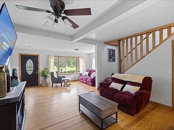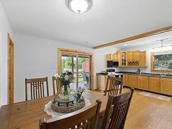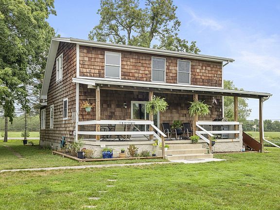 Charming cedar shake farmhouse brimming with character, set on a spacious one-acre lot. A versatile detached pole barn provides space for a three-car garage or workshop. The 3-bedroom, 2-bath layout features a main-floor bedroom, laundry, sunroom, and classic pine wood floors. Upstairs, a cozy loft leads to two generously sized bedrooms and a full bath, along with flexible spaces ideal for an office, den, or reading nook. Central air and propane gas heat ensure year-round comfort. Outdoors, relax on the covered porch while watching deer in the fields, or harvest fruit from the peach, apple, and pear trees. Garden enthusiasts will love the greenhouse and chicken coop area, making this property a true homestead retreat. Book your showing today!