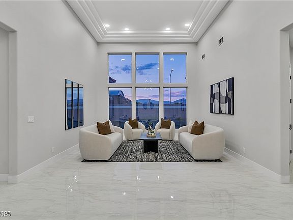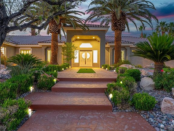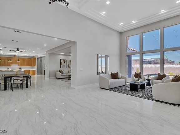 Step into elegance and serenity with this beautifully reimagined desert oasis in the heart of Las Vegas. Nestled on a lush, palm-lined lot, this single-story estate exudes luxury from the moment you arrive. With stunning curb appeal, modern finishes, and a resort-style backyard, this home is the perfect blend of sophistication and comfort. 4 spacious bedrooms + 3 bathrooms, Fully remodeled interior with high ceilings and picture windows that frame breathtaking sunset views, Open-concept living area with polished tile floors, LED recessed lighting, and custom tray ceilings, Gourmet chef’s kitchen featuring sleek wood cabinetry, quartz countertops, a center island with waterfall edge, and top-of-the-line Kitchen Aid Stainless Steel Appliances, Primary suite with spa-like ensuite, dual vanities, LED backlit mirrors, and a dream walk-in closet, Professionally landscaped backyard with pavers, mood lighting, and a sparkling pool + spa—perfect for entertaining or unwinding.