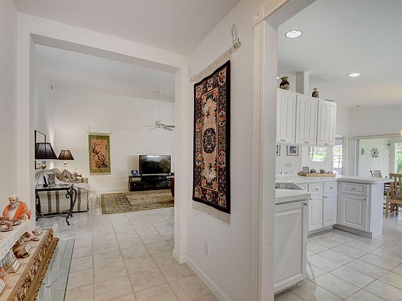This lovely, airy & spacious residence situated towards the end of a quiet cul de sac street in sought-after Riverwalk Community features 3 bdrm/2 bthrm has been exceptionally maintained & is in Pristine Condition. Enjoy a morning cup of coffee under the covered patio or watch the Florida sunset over the lake. This unique residential community offers a beautiful waterfront Town Center where you can grab lunch or dinner at the on-site ''Centanni'' Italian restaurant. Feeling active; you can enjoy tennis and pickle ball on the eight Har-tru lighted courts with on-site tennis instructor or workout in the fitness center. Relax or take a swim in one of the three heated pools, fish from one of the many picturesque bridges. Is competition more your liking, play ping pong, pool or bocce. There are 12 miles of scenic pedestrian pathways, take a bike ride or a leisurely walk. If that's not enough there's yoga, mahjong, bridge, foreign language classes, crafts, aqua aerobics and so much more! Resort living without exorbitant country club fees! Welcome Home!