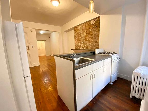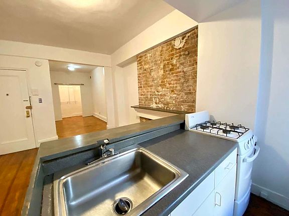 # PLEASE SEE VIDEO ... Spacious 2 Room Studio Queen Size bedroom area w/ large closet Living room area w/ deco fire place Full kitchen w/ breakfast bar and window Spacious white tile bathroom Cats ok, no dogs!