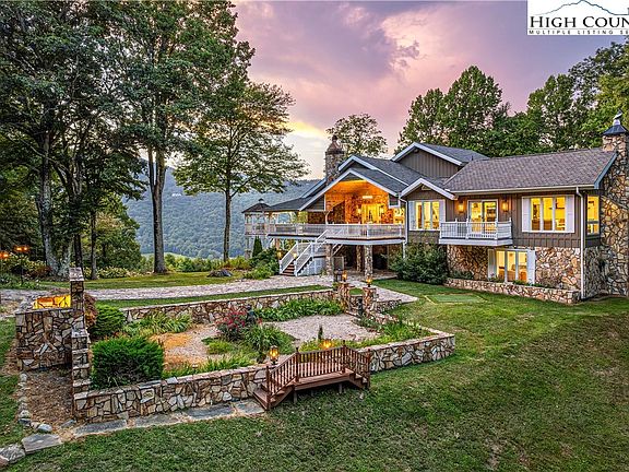 Amazingly versatile ridge top estate property with almost 18 acres, long range mountain views, recent 7 BR septic operating permit for impressive 6600+ sq.ft. residence, courtyard overlooking pond with cascading landscape waterfall. Private setting offers exclusivity, peace and quiet. Not in a subdivision - no restrictive covenants - no POA. Lower section of acreage can be easily subdivided into several gentle building sites with state maintained road frontage - build more rental cabins or create a larger family compound. Incredible gross rental income projected just under $400K this year. Continue with rentals to offset some expenses or preserve all the time for comfort and enjoyment for you and your extended family and friends. Home is popular rental for wedding guests, family or college reunions, multi-generational vacations, corporate retreats, football weekends. Abundant natural light flows throughout from the many large windows creating uplifting interior. 7 bedrooms, 5.5 baths. Elegant primary BR suite on main floor has fireplace, sitting areas, long range mountain views, luxurious bath. Two spacious living rooms. Huge, upscale kitchen and dining areas seat 16. Fantastic game room for kids of all ages with home theater, video gaming room nook, poker/game table, foosball, air hockey, pinball and MORE! Outdoor spa hot tub retreat on secluded covered porch adjoins cozy outdoor seating. Retreat to your mountaintop acres convenient to Boone, Banner Elk, Parkway, Blowing Rock. Ski, snowboard, hike, bike, golf, fish - all close by. No drive-bys. Shown by appointment only. Do not disturb vacation renters. Property is popular vacation rental with heavy bookings - can only be shown when property is not rented.