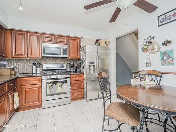 1st floor has tile flooring, entrance to family room, 1/2 bath, garage & sliders to Back Yard. There is an eat in kitchen, custom cabinets, granite countertops, Living room/dining room combo with sliders to deck. Primary Bedroom w/ Cathedral Ceilings, 2nd bedroom & Full Bathroom, Partial unfinished Basement with Laundry area.