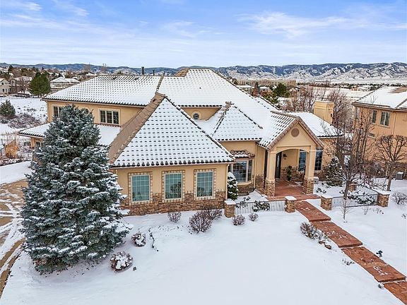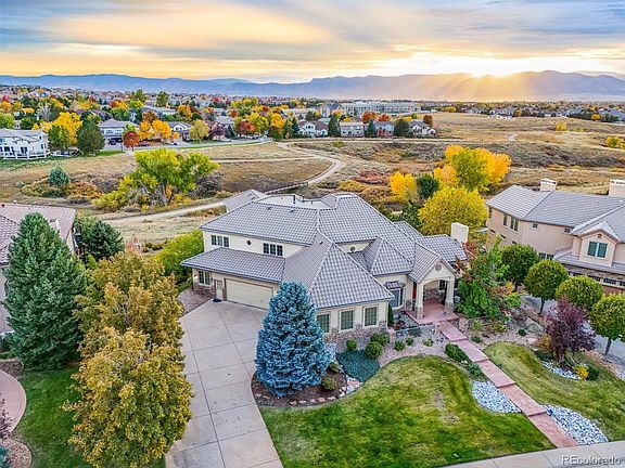 Nestled in the prestigious gated community of Highwoods, this exceptional custom estate offers a seamless blend of timeless elegance, modern conveniences, & over $550K in thoughtful updates. Set on a premier lot with breathtaking mountain views, the home impresses from the moment you arrive. A flagstone pathway, stamped concrete entry, & striking stone & stucco exterior exude sophistication. Outdoor spaces designed for entertaining & relaxation, featuring a composite deck with rod iron railings, a covered patio, fire pit, & hot tub. The grand entry welcomes you with soaring ceilings & transitional design elements that set the tone. The main floor study offers rich character with wood beams, built-in shelving, & a gas fireplace. The formal dining room, enhanced by crown molding, provides an elegant space for hosting gatherings. The chef’s kitchen is a true centerpiece, boasting granite countertops, soft-close cabinets, Sub-Zero refrigerator, Dacor 6 burner cooktop and double oven as well as a prep sink. Adjacent to the kitchen, the cozy nook features a built-in desk & direct access to the deck, creating a seamless flow between indoor & outdoor living. The family room is a showcase of comfort & style, featuring a decorative wood ceiling, gas fireplace, wet bar, & windows that frame stunning mountain views. Upstairs, the primary suite serves as a private retreat with a spa-inspired bathroom offering a stand-alone soaking tub, multi-head shower, dual vanities, & custom walk-in closet by Closet Factory. Secondary bedrooms are equally impressive, each with ensuite baths & large closets. The fully finished walk out basement offers a 2nd wet bar, 2 additional bedrooms & a theater room. Additional highlights include a 4-car garage with EV charger, a flat, fenced yard ideal for outdoor activities. Located near top-rated schools, golf courses, & premier dining & shopping, this property offers a lifestyle of unparalleled convenience & luxury.