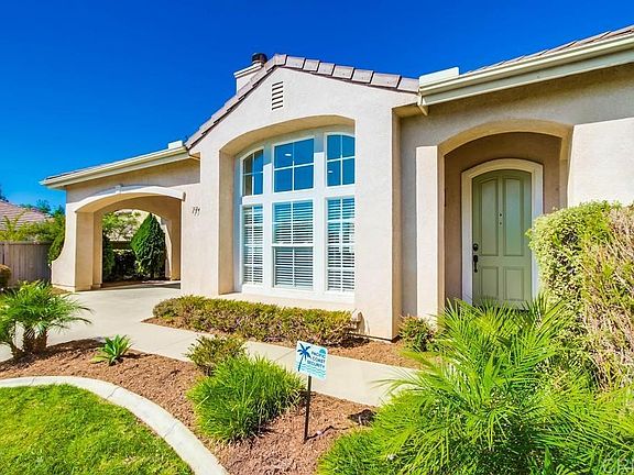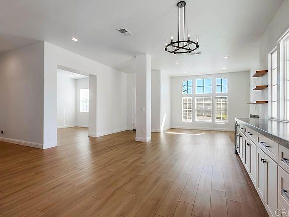 Experience refined single-level living in this luxurious 3 bed, 2.5 bath home with an office/bonus room, offering approx. 2,401 sq. ft. of elegant open-concept design. Situated on just over 1/3 acre, this estate-style property features 10-ft ceilings, luxury vinyl plank flooring, and custom lighting throughout. The gourmet kitchen boasts an oversized quartz island with seating for 10, custom cabinetry with soft close, KitchenAid appliances, and a wine refrigerator, flowing seamlessly into spacious living areas highlighted by two digital fireplaces for a cozy yet modern ambiance. The primary suite includes an organized walk-in closet and spa-inspired bath, while two generous secondary bedrooms feature mirrored closet doors. Outside, enjoy a low-maintenance backyard with stone pathways, turf, and garden accents perfect for relaxing or entertaining. Complete with window coverings, installed alarm system, and central A/C, this home blends comfort, style, and sophistication. Located in a cul-de-sac in gated Peppertree Community and steps from community park with meditation garden, large grass park and playground.