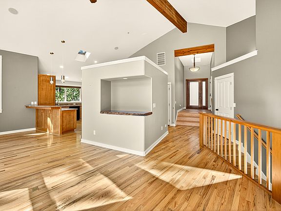 Quality built contemporary home placed among the madrone and pine trees in the hills of beautiful Ashland OR. Versatile, user-friendly floor plan with many unique architectural features. The cozy living room w/ fireplace, kitchen and dining area surround a well-designed multi use pantry closet. Soaring open beam ceiling above leads to a wall of windows allowing for natural light and views of the trees and mountains afar. Two spacious decks to enjoy the natural setting. Main level has an artistically designed room with a spoke pattern beam ceiling, custom lighting, handcrafted shelving and a full bathroom. Lower level you will find a large spa primary bedroom suite w/ private patio, attached office/ reading room with access to the lower deck. Bathroom has double vanities, a soaking tub and radiant heat floors. Two additional bedrooms, a full bath and a laundry room are also on the lower level. Perfect for the outdoor enthusiast w/ hiking trails just a few feet from the front door.