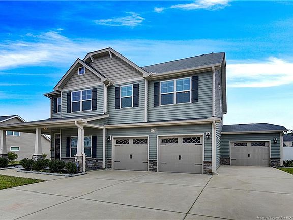 Stunning 4 bedroom 2.5 bath in the desirable Westgate subdivision in Raeford! Interior features large open kitchen with granite counters and breakfast area. All bedrooms and laundry are located upstairs. Master bedroom boasts his and hers closets, dual vanity sinks, separate shower and garden tub. Outdoor space includes custom stamped concrete on the front and back patios, custom curbing, screened porch, covered patios, fenced yard and three car garage!Community features 2 full size pools, a kiddie pool, newly installed splash pad, 2 gyms, a playground, volleyball and soccer fields.
