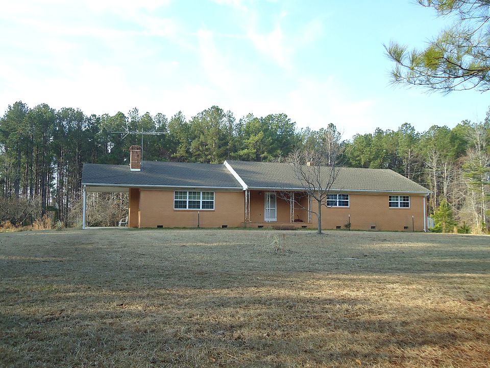 4 sides brick. Partial basement. Perfect for weekend getaway, raising your family in the country or for a hunting club, retreat or home. Beautiful hardwood floors. Huge kitchen and breakfast area. Living room, dining room. Covered front porch. Very private and secluded. 1 car carport. Peach, apple and pecan trees. . Pasture around home perfect for horses plus wooded property.