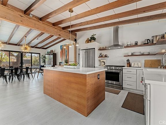 Welcome to your dream home nestled in the heart of tranquility! This meticulously transformed property boasts an array of luxurious features sure to captivate your senses. Step into the main house, where comfort meets sophistication with 4 bedrooms and 3 bathrooms, with 1 bedroom featuring an en suite bath complete with a dual shower head. Situated on a double lot, the possibilities are endless with the opportunity to build another property behind. The charm continues with brand new copper pipes, ensuring both efficiency and durability for years to come. Relax in your own oasis with a mesmerizing rock waterfall and pond, surrounded by lush fruit trees including plum, orange, nectarine, apricot, lemon, and pomegranate. Enjoy the convenience of laundry facilities in the master bedroom with a stacked washer/dryer. Entertain with ease in the gourmet kitchen featuring, Exposed wood beams, new appliances, custom walnut island, soft-close cabinets, and a dining area adorned with a mid-century table and chandeliers. Embrace the warmth of a wood-burning fireplace and unwind in the permitted attached ADU featuring 1 bedroom a 4-piece ensuite bath. The allure of this property extends outdoors with custom legs in place for future solar potential, a sweeping patio area with broad concrete and flagstone, and a 10-person hot tub perfect for relaxation under the stars. Additional highlights include a brand new roof on the main house, new HVAC system with mini splits throughout, brand new doors, new sewer connected and custom marble finishes in all bathrooms. Whether you're seeking a serene retreat or an entertainer's paradise, this showpiece luxury home offers the perfect blend of comfort, style, and sophistication. Located just a short 20-minute drive from Joshua Tree National Park, adventure awaits right at your doorstep. Whether you're hiking, rock climbing, or stargazing, you'll love exploring the natural beauty of the area. Don't miss your chance to own this exceptional property!