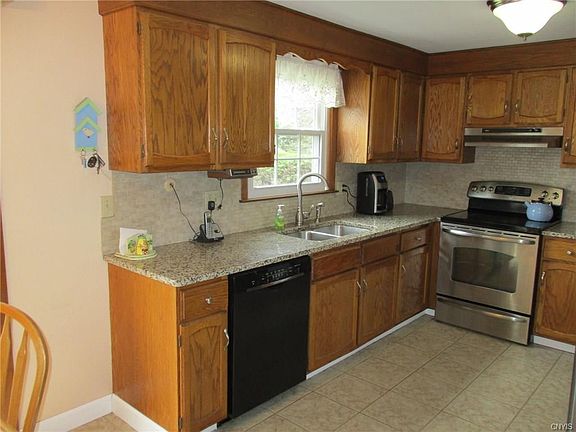 This home is in excellent condition and ready to move right in.. Kitchen with granite counter tops, eating area , stainless appliances and ceramic floors.. Large living room with gas fireplace. Hardwood floors in living room and bedrooms. Replacement windows. A rare find with a true in-law or teen-college student suite equipped with kitchenette, full bath, living room and dining area. 4th bedroom leads into the in-law apt or a separate entrance from the garage.. Finished lower level for extra living space. Sliders lead from the kitchen out to the deck overlooking good size back and side yard. Taxes are not listed with the basic star of $814.00....