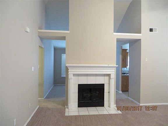 Spacious 3 BR in great location in Frisco. The living room with fireplace has vaulted ceiling. The eat-in kitchen is huge with appliances and island. Covered patio for entertaining outside. Master bath jetted tub does not work.