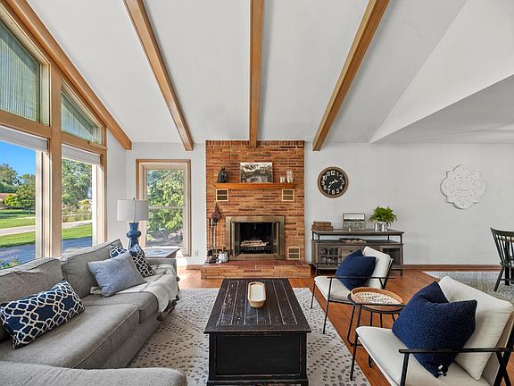 Beautifully updated mid-century Fox Point ranch! 2021 kitchen remodel with cabinets, butcher-block counters and Tuscan Bronze Stainless appliances. Baths refreshed with LVP flooring and vanities, family room with new carpet, plus updated lighting throughout. Living room shines with 16 ft vaulted ceiling, wall of windows, hardwood floors and fireplace. Three generous bedrooms on main level with ample closets. Lower level waterproofed in 2025 and ready to finish for rec room, gym, playroom or 4th bedroom with great storage and workshop potential. Nearly 0.7 acre fenced lot with wooded backdrop for privacy, entertaining or play. Walk to Stormonth, parks, Towne Club and market. Top-rated Fox Point Bayside schools and priced below comps, rare value!