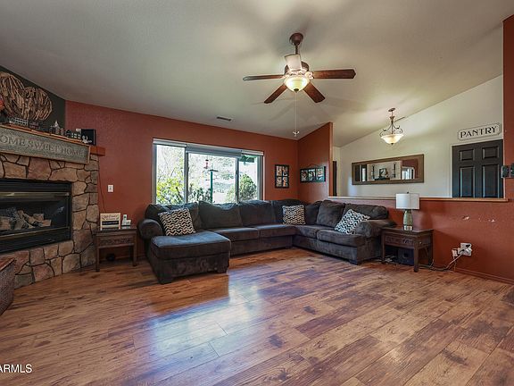 Energy-Efficient Mountain Home on 2.5 Acres with Stunning Views! Enjoy breathtaking mountain views from this beautiful 3-bed, 2-bath home on 2.5 acres in Doney Park! Featuring a permitted large addition with a cozy wood-burning fireplace, newer windows, a gas fireplace in the living room, and paid-off solar for energy efficiency. Inside, you'll find wood laminate flooring throughout, tile in bathrooms, and a spacious kitchen with an island and walk-in pantry. The large lot offers plenty of room to spread out with endless possibilities and is zoned for horses and other farm animals! Whether you're dreaming of a private mini-ranch with space to add a barn, corral, or chicken coop, this property provides the flexibility and room to make it happen. Located on natural gas and no HOA!
