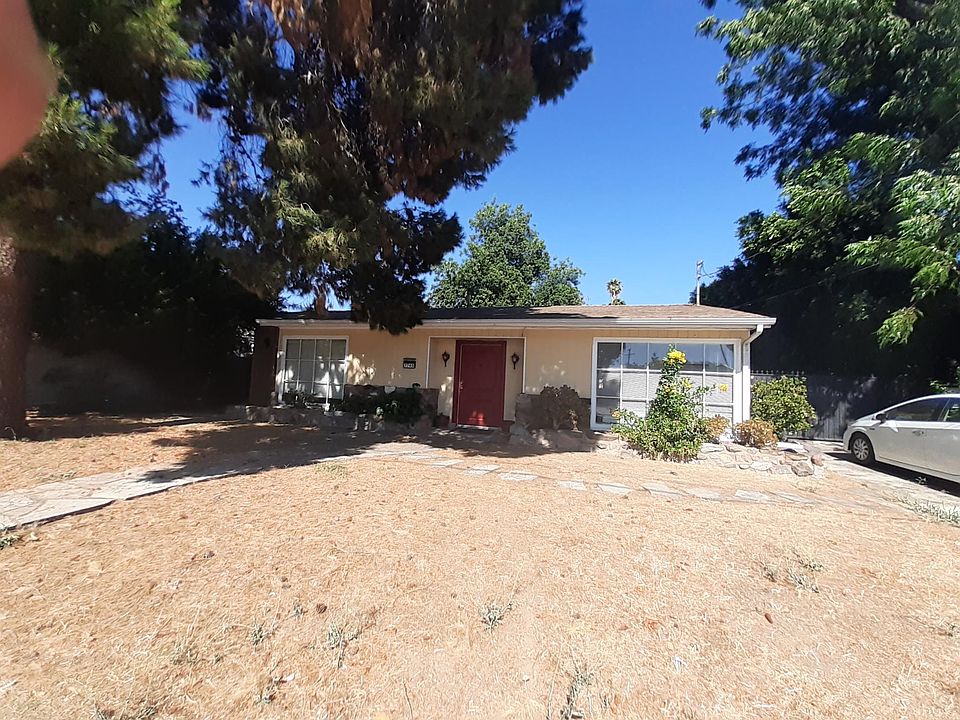 This is a beautiful 1,600 square feet split home and has three bedrooms and two bathrooms. It also enjoys a large living room / dining room and full kitchen. The back yard greets you with a large car gate which opens onto very long driveway. At the end of this driveway is a nice, large turn-around directly in front of the detached and over-sized two car garage with an additional over-sized carport attached to the left of the garage. In between the two homes is a large patio area that is seemlessly connected through to the large driveway. Just past the patio and to the left of the driveway is a nice lawn surrounded by various bushes and orange and lemon trees. To the left of the garage and carport is a chicken coop and a large hard-dirt playing area. Behind the garage, the back yard continues on and is approximately 80 feet long by 75 feet wide. Must be seen to be believed!! 1 year contract minimum