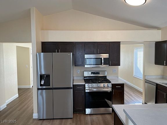 THE SINGLE-STORY HOME FEATURES VAULTED CEILINGS, OPEN FLOOR PLAN AND WIDE HALLWAYS. THE KITCHEN HAS A NOOK AREA, BREAKFATST BAR, AND LOTS OF CABINETS. THE PRIMARY BEDROOM HAS VAULTED CEILING AND A LARGE WALK-IN CLOSET. THE PRIMARY BATH HAS A SEPARATE SHOWER AND TUB WITH DOUBLE SINKS. SECONDARY BEDROOMS ARE BOTH A GOOD SIZE WITH BIG CLOSETS. OVERSIZED 3 CAR GARAGE IS INSULATED, HAS AN ACCESS DOOR TO BACKYARD. CLOSE TO 215&95 FREEWAYS, SHOPPINGS, SCHOOLS.