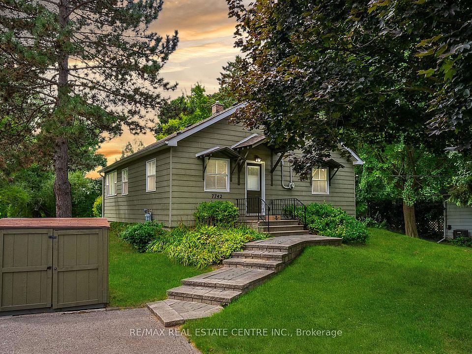 Once upon a time a once-in-a-lifetime opportunity became available in the historic village of Churchville where history meets heaven. Two side- by-side riverfront properties are available for you and your family (7736 Churchville Road, see other listing). Secondary Home is a 2 Bedroom Bungalow with 73' Frontage of Credit River Frontage. Featuring 4 Season Sunporch with Heated Floors, Newer Kitchen & 4 Pc Bathroom, Open Concept with tons of windows, & 2 Driveway parking spots. Churchville is one of Bramptons most historic communities, with roots dating back to the 1800s. It offers scenic trails, Churchville Park, and abundant wildlife - all just minutes from highways, shopping, and top schools. Enjoy the best of both worlds: the quaint, country-village feel with quick access to downtown Brampton. Easy access to 401, 407, and 410. Golf and leisure await nearby at Lionhead Golf Club and Eldorado Park.. The time in NOW.. Churchville Awaits you!