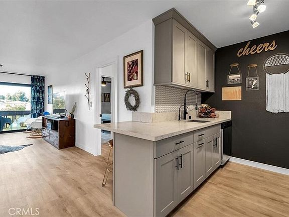 Sophisticated, stylish unit remodeled by interior designer-owner offers resort-style living near Marina del Rey. Flooded with natural light, it features wide plank floors, open layout, and a stunning kitchen with quartz counters, basket weave backsplash, bronze faucet, soft grey shaker cabinets, electric range, microwave, and fridge with filtered ice. Dining area includes dramatic lighting and large shaker-style storage closet with built-ins. Luxurious bath boasts dark wood vanity, quartz top, herringbone tile, and marble step-in shower with bronze fixtures. Quiet balcony with sunset views is perfect for morning coffee or evening wine. Includes 1 2 gated garage parking spaces near elevator. Other upgrades: smooth ceilings, double-paned windows/doors, new interior doors, ceiling fan. Rent includes access to manicured grounds, 2 pools, tennis/pickleball/basketball courts, gym, sauna, hot tub, and remodeled clubhouse with pool tables and lounge. Gated with onsite security for unmatched peace of mind.