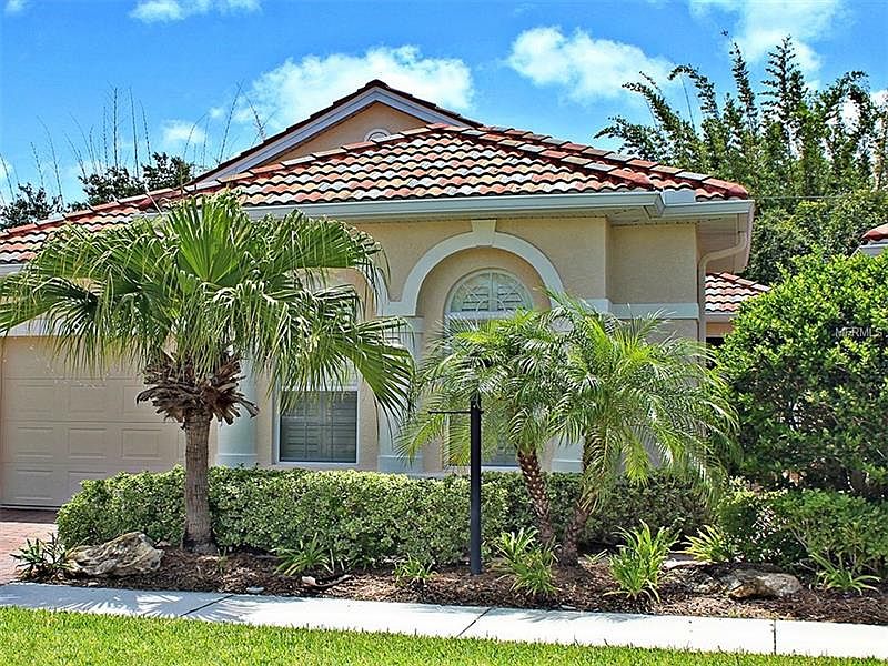 This is a charming, Mediterranean-style single-family home with two bedrooms, two baths, one-car garage, tile roofs, paver driveways and walkways. The home features a courtyard entry and covered/screened lanai, formal living room and a sitting room/den area off the master suite. Enjoy a large, open kitchen with granite countertops. There are plantation shutters throughout the home. This residence is located in Palm Lakes, a maintenance-free, gated community with a clubhouse and a heated pool overlooking a beautiful lake and fountain. This home is convenient to shopping, Sarasota-Bradenton International Airport, Sarasota beaches, golf courses, schools, restaurants and museums. Enjoy this pet-friendly community with low HOA fees.