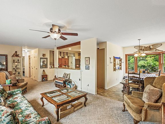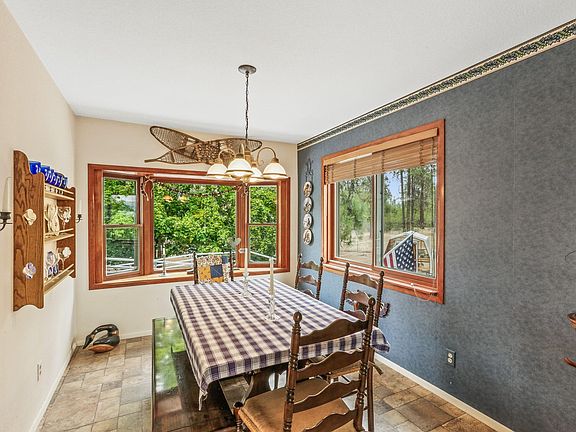 Our buyer could not sell their home so this is your chance to own a lovely home with a huge shop on 10 acres with views of the Spokane River! View acreage of 10 fenced acres (2 parcels) that back up to Avista land. This lovely rancher offers beautiful views of the Spokane River from a large deck. On the main floor there is a large Primary Suite with a second bathroom for guests, a kitchen with a walk-in pantry, eating bar and formal dining room in addition to the main living room. Downstairs there are two additional bedrooms, a family room and a large laundry room with extra storage. In addition to the home there is a 32 x 52 sf shop with a large loft and covered RV parking. There is water to the shop and a 220 electrical box. The 2006 well was just tested and the septic was pumped, ready for a new buyer. This woodsy retreat will make you feel like you are on vacation every day!