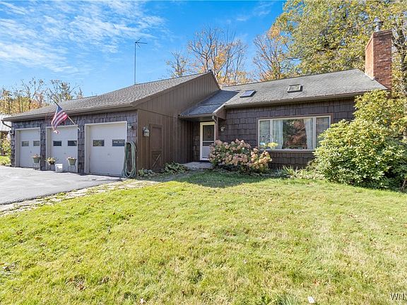 Welcome to 7744 Center Road. This 3+ Bedroom, Two Story Contemporary Craftsman West Falls Estate in Holland Schools is a rare find. Experience your own private retreat with 500 feet of frontage and a brand new blacktop driveway (2024) that leads to this special home. Live and entertain with ease in the expansive floor plan featuring a spacious great room with vaulted ceiling and craftsman wooden beam finishes, wood burning fireplace and new gleaming hardwood floors that flow seamlessly into a formal dining room and spectacular 224 square foot sunroom addition completed in 2002. The quartz kitchen was completely renovated in 2010 and boasts updated appliances, solid wood cabinetry and tile floors. Two large bedrooms (one with an en suite full bath) feature large closets and original hardwood. The main level full bath was renovated with a new tub and tile surround, modern fixtures and vanity. The second floor overlooks the dramatic great room and provides multiple flexible living spaces including a third bedroom with another en suite full bath, a sitting area and potential fourth bedroom currently used as an office that boasts another soaring finished solid wood craftsman ceiling. Hardwood floors also flow throughout the upstairs rooms. High quality capital improvements are evident throughout including an updated furnace, architectural roof and 100 AMP electrical service with a generator connection. The three car attached garage provides over 700 square feet of space to use for parking, as a workshop, additional storage and more. A full basement offers options for laundry and more storage or finish for even more living space. A 20x24 covered structure with a concrete slab was built in 2009 and provides unlimited potential for a wide range of hobbies and interests. Relax and unwind on the large composite deck and enjoy the outdoors roaming your 9.5 wooded acres perfect for a variety of recreational activities. This one of a kind property surrounded by mature gardens and landscape boasts country living with convenience as it is minutes away from the Village of East Aurora and Knox Farm State Park.
