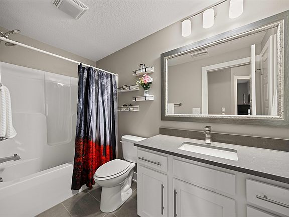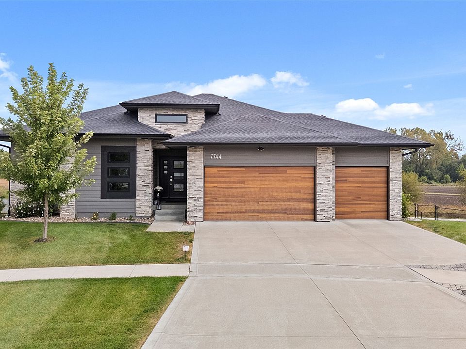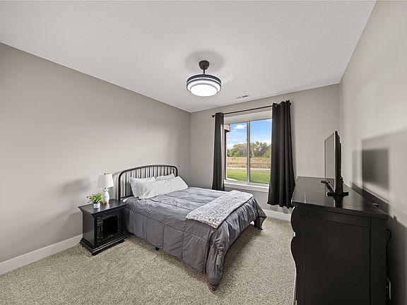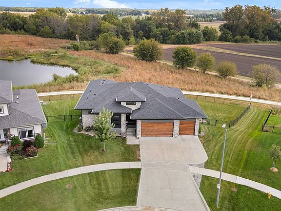 Charming Johnston Ranch home by Drake Homes, tucked in a peaceful cul-de-sac with scenic water views and open space behind. This 4-bed, 3-bath gem boasts dual thermostats for customized comfort and gleaming hardwood floors throughout the main level. The generous primary suite features a dual vanity, soaking tub, separate shower, and large walk-in closet. The modern kitchen shines with stainless steel appliances, white cabinetry, a glass tile backsplash, and a spacious walk-in pantry. The finished walkout basement includes 2 bedrooms, a full bath, and a wet bar with a full-size fridge. All kitchen appliances, washer, dryer, and water softener stay.