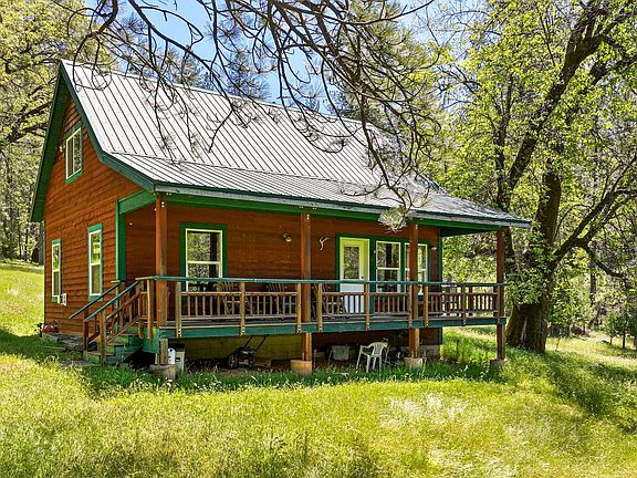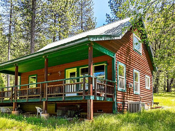 Nestled deep within 163 acres of untamed forest, this rustic cabin exudes an irresistible charm. A creek meanders alongside the property, and the property is fenced off for your animals or livestock. Perched beside a seasonal pond, the cabin boasts a cozy interior with rustic wood interior, 2 gas fireplaces keeping things cozy in the open living space, and large master bedroom downstairs, along with a full bath. Upstairs, a spacious loft with two built-in twin beds provides ample sleeping quarters. Outside, a covered front porch and back patio offer spots to kick back and soak in the wilderness. Off the grid, the cabin relies on a clever system powered by a propane generator and batteries, ensuring modern comforts including a complete kitchen, electrical outlets in every room, washer/dryer hook-ups, hot water on demand, and working well. The cabin comes fully furnished, everything stays, except some personal items, including back-up gas powered generator, riding lawnmower, walk behind weed eater, tables saw and tools. This cabin has been a weekend get-a-way & family event compound and has not been lived in full time. Watch the video