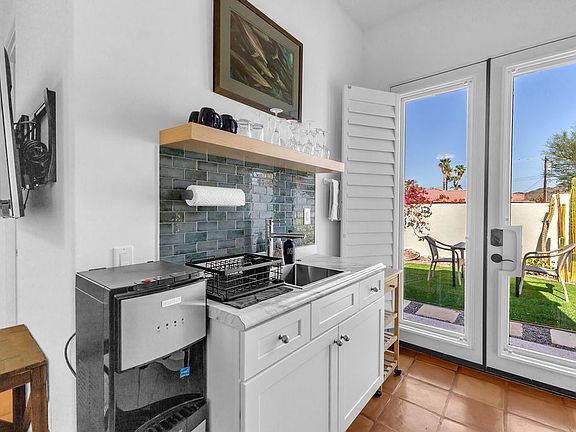 Attached Casita in La Quinta Cove, Seasonal or Long Term Rental. Experience the charm of a Spanish style home designed for everyday functionality and infused with a relaxing vacation vibe. The attached casita offers a private entrance and yard, 1 bedroom, bath, living room, and kitchenette. A washer and dryer combo is included, and the space comes fully furnished and stocked for a turnkey experience. Perfect for seasonal or long term rental, the living room couch features a pull out for extra guests. Located on a private corner lot in La Quinta Cove with stunning mountain views to enjoy from your own yard.