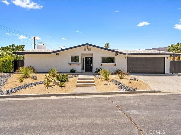 This home sits on an oversized, elevated corner lot one block from the top of La Quinta Cove. This premium location provides stunning mountain views and proximity to multiple trails and destinations, including Bear Creek Trail, Cove to Lake Trail, and Cove to Oasis Trail and Picnic Area. The exterior was recently painted and has great curb appeal and easy access to the RV PARKING on the side of the home. The floor-plan is perfect for modern living, with the living room, dining area, and kitchen all open to each other. The wood-burning fireplace provides a focal point with the wet bar on the opposite wall. The oversized Owner's Suite has an ensuite bathroom with a full linen closet and LARGE CLOSET, a rare find in the Cove. The guest bedrooms are located on the other side of the home for added privacy. They share a hall bathroom with a shower and tub combination. You will find an additional closet and cabinets in the hallway - this home has so much storage! The washer and dryer are located in the garage. The hot mop roof is in great condition and designed to be converted to tile if the new owner desires. This home was built to last with structural upgrades that you do not find in this area or at this price point. Section 8 tenant occupied so rental income always on time and secure.