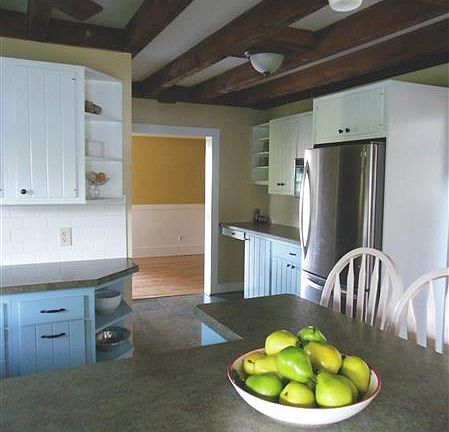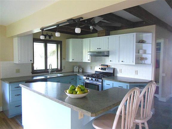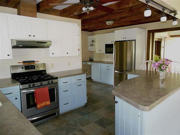 Colonial farmhouse on 1.8 open, sunny acres w/ panoramic views. Barn wood ceiling beams in living rm, upstairs hall, master bdrm and kitchen. Renovated kitchen with new tile floors, leathered granite countertops, stainless farmhouse sink, subway tile backsplash and new fixtures. Custom cabinets & shelves add charm. Wood burning fireplace w/ gas starter adds warmth to family rm/kitchen. 1st floor bathroom remodeled with new tile, vinyl floors, matte black faucet and copper light fixtures with black shiplap walls that give it a modern farmhouse touch. 1st floor bdrm/den w/ cedar closet & screen porch. Mud room w/ spiral staircase leads to huge 2nd fl. master w/ large closets & spacious laundry/dressing rm w/ more closets. New carpets & refinished hard wood floors. Peaceful setting w/ large frontage, apple trees, & porch w/ swing. Detached 2 car garage w/ large rear workshop. Chicken coop, large garden and fire pit gives the property everything you need.