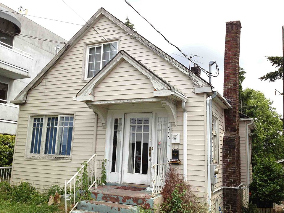 Roosevelt home or duplex within minutes to Green Lake, U District, shopping! Main unit with 3 levels of living. 1 bedroom 1 bath unit in back with own yard; separate entrance but also access to unit from main home. Offered as-is, some work needed. 4 bedrooms in total and 2.5 baths with basement bonus rooms. Vintage hardwood floors throughout main and upper level. Living room with wood-burning fireplace, spacious kitchen, deck overlooking fenced back yard. New vinyl siding installed in 2011.