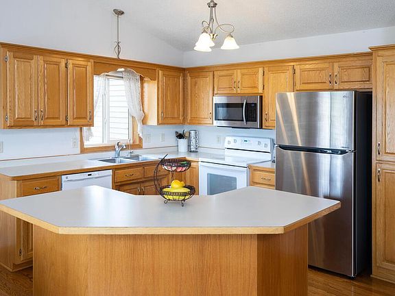 Welcome to your new home! Perfect 4 bedroom, 2 bath home on a nice corner lot in a great neighborhood! Hardwood floors in kitchen/dining and living room! Kitchen has loads of custom cabinets and big center island. Walk out to your deck from the dining room and enjoy a cup of coffee! Walk out basement is completely finished, just ready for you to enjoy! Nice patio and porch swing. Property has a rain bird irrigation system and sand point well for additional watering. Beautiful flower garden with lots of perennials so you don't have to do a thing but enjoy! New roof replaced May 2022. Brand new storage shed also included!
