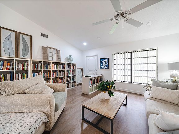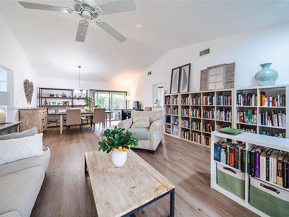 Rare opportunity to own a home in the wonderful & desirable 55+ Cloverfield community! Sitting on a Corner Lot, this beautifully remodeled single family home, features a 2 bed, 2 bath, with a luminous modern kitchen, white shaker style cabinets, top of the line quartz countertops, SS appliances, kitchen pantry, wood vinyl floors, vaulted ceilings, led lighting, large screened patio, interior laundry room, and a 2-car garage. Your soon to be future home is protected by Hurricane Shutters throughout. Low maintenance includes roof cleaning every 2-3 yrs, exterior painting every 7 yrs, basic cable, lawn care and sprinkler system! Pets WELCOME! Community is located in Central Boca, conveniently close to the town center mall, restaurants, parks and places of worship.